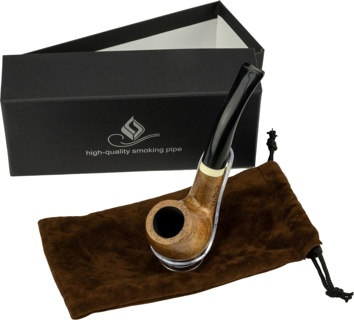 Pipe "Mr Pipe" Curved 9mm filter pipe in Redwood with pipe stand