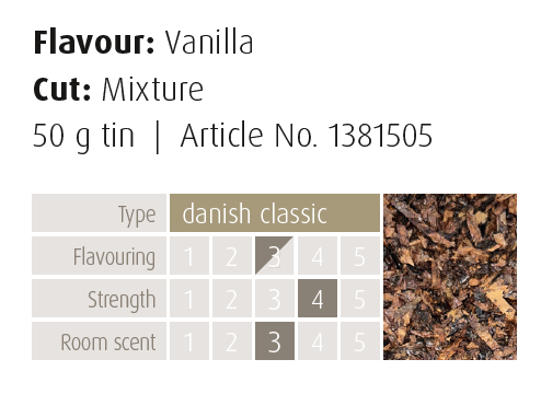 Denna blandning är en hyllning till hans prestation. 1855 är en färdig gnuggad, värmepressad blandning mixad med mogen Virginia från USA och Burley från Afrika och Sydamerika.